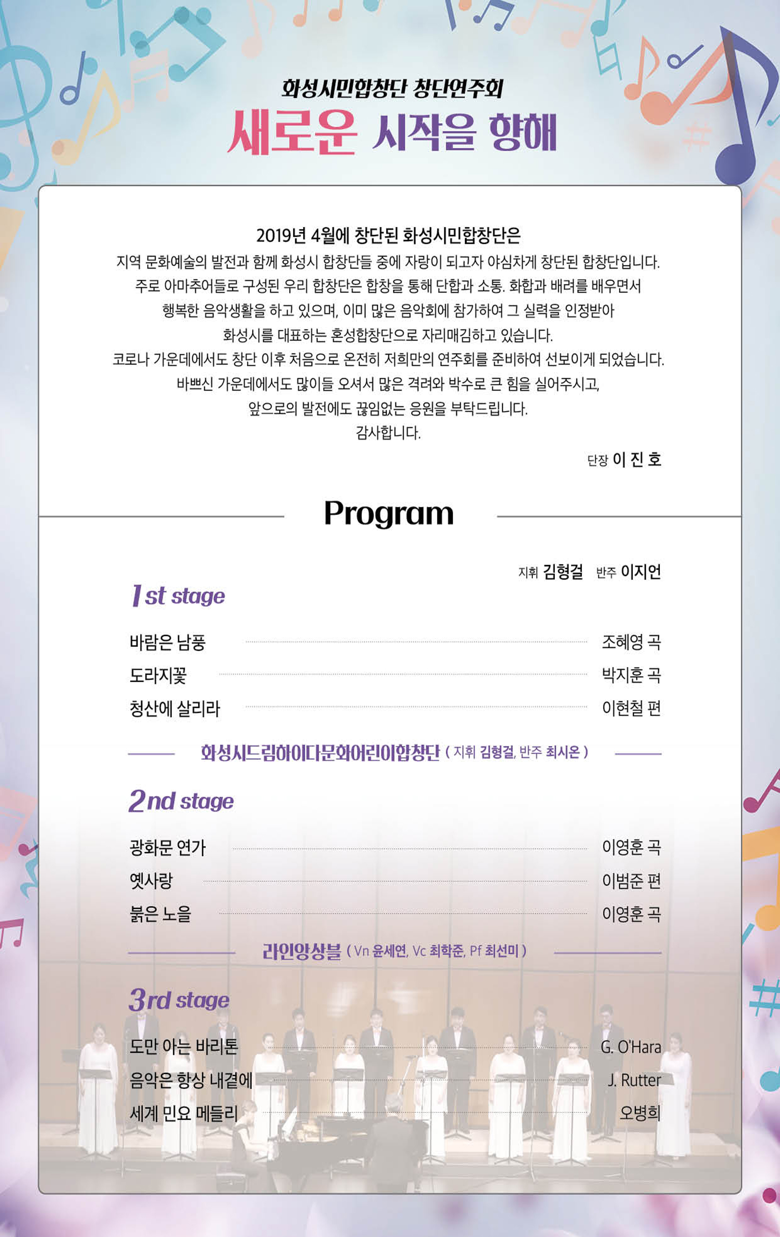 【[공 연]대관공연】화성시민합창단 창단연주회 장소 모두누림센터 누림아트홀 기간 2022년 7월 9일 ~ 2022년 7월 9일 요일 토 공연시간 2022년 7월 9일(토) 17:00 (소요시간 70분) 티켓정보 전석초대 관람등급 5세 이상 문의 070-7570-5538 .. 목록이미지_화성시민합창단.jpg [ Size : 413.08KB, Down : 94 ] 미리보기 다운로드 목록이미지_화성시민합창단 포스터_이미지.jpg [ Size : 1.14MB, Down : 86 ] 미리보기 다운로드 포스터_이미지 상세이미지.jpg [ Size : 1.03MB, Down : 96 ] 미리보기 다운로드 상세이미지 목록보기