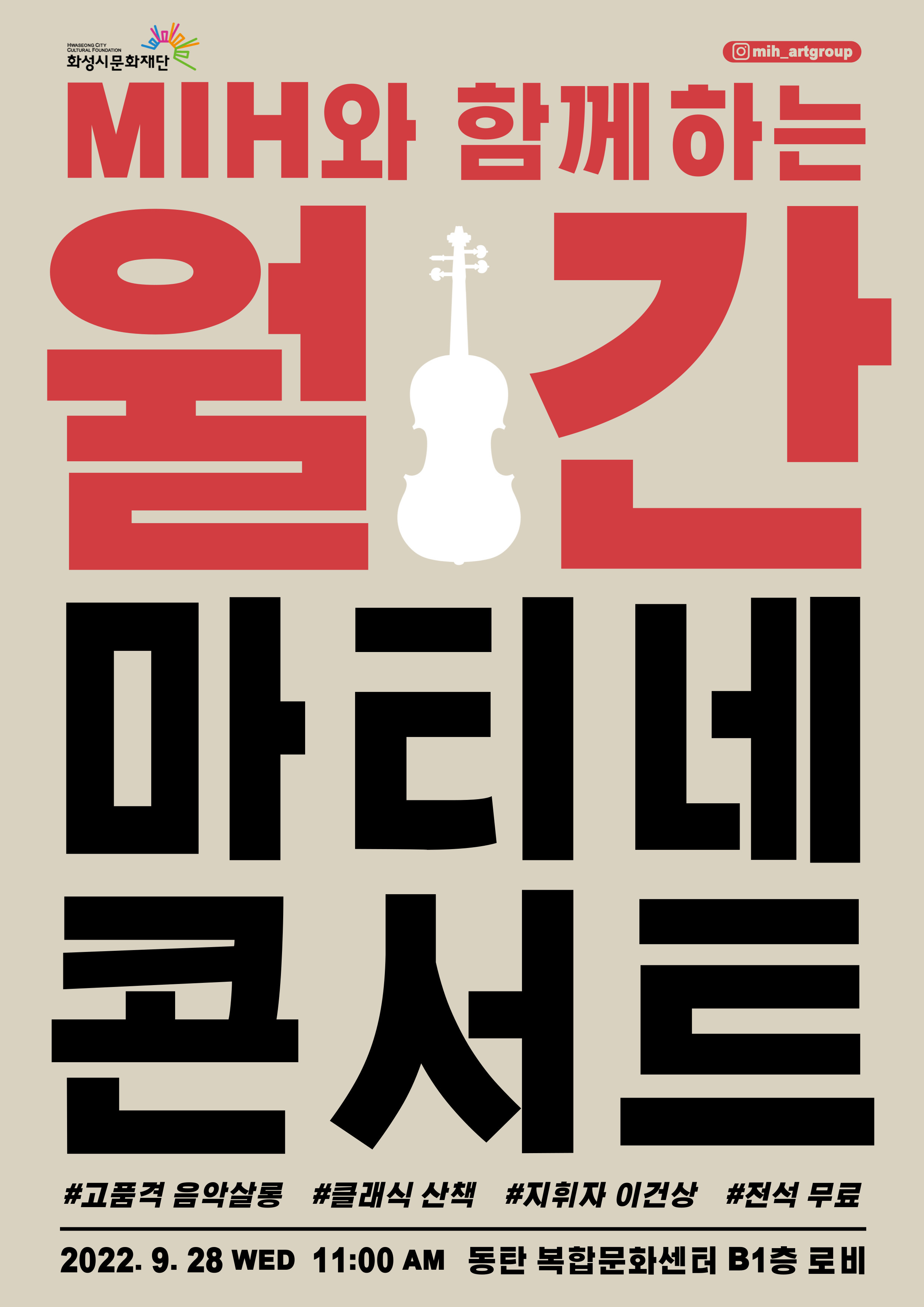 [화성시문화재단] 무료공연, <M.I.H와 함께하는 월간 마티네 콘서트(9월)>