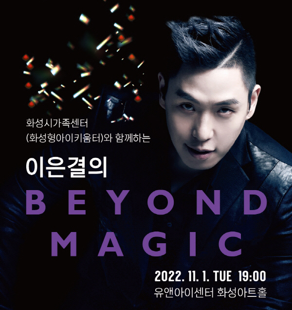 【[공 연]대관공연】이은결의 Beyond Magic 장소 유앤아이센터 화성아트홀 기간 2022년 11월 29일 ~ 2022년 11월 29일 요일 화 공연시간 2022년 11월 29일(화) 19:00 (소요시간 90분) 티켓정보 무료(사전 예약 필수) 관람등급 5세 이상 문의 031-267-8815 화성시가족센터https://hsfc.familynet.or.kr/center/ 아래 이은결씨 공연은 11월 1일(화)에서 29일(화)로 변경되었습니다. 목록이미지_이은결.jpg [ Size : 254.78KB, Down : 88 ] 미리보기 다운로드 목록이미지_이은결 이은결의-beyond-magic(웹).jpg [ Size : 364.07KB, Down : 926 ] 미리보기 다운로드 이은결의-beyond-magic(웹) 목록보기