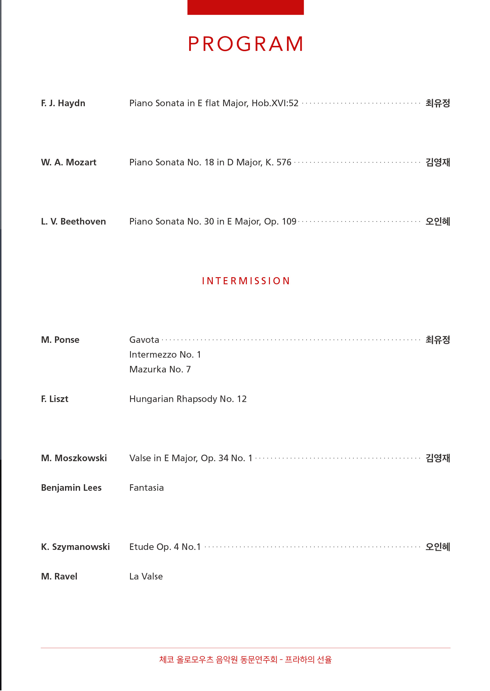 체코 올로모우츠 음악원 동문연주회 <프라하의 선율>