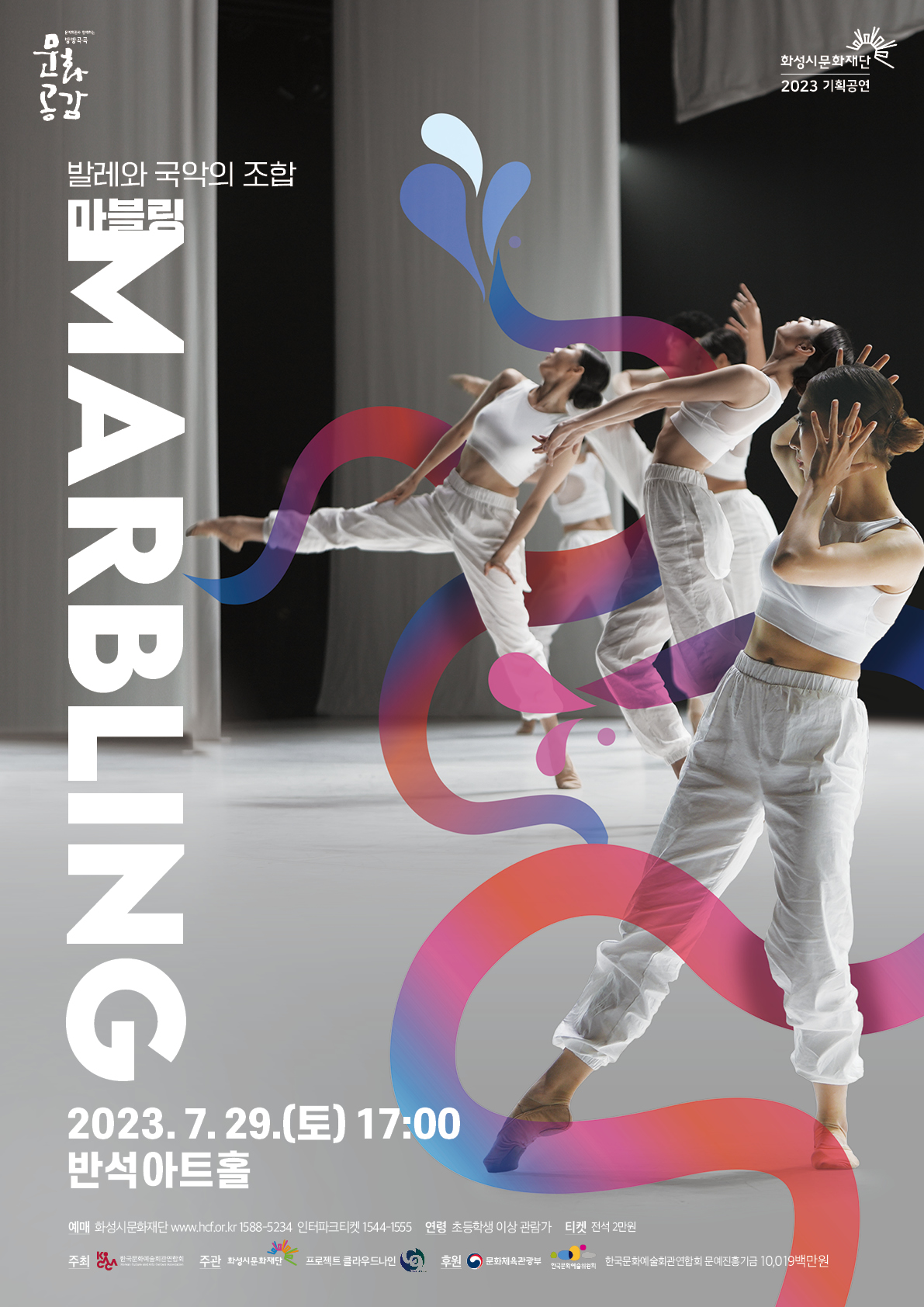 【[공 연]기획공연】[방방곡곡] 발레와 국악의 조합 <마블링> 장소 반석아트홀 기간 2023년 7월 29일 ~ 2023년 7월 29일 요일 토 공연시간 17:00 (60분) 티켓정보 전석 2만원 관람등급 초등학생 이상 관람가 (2016년 12월 31일 이전 출생자 관람 가능) 문의 1588-5234 .아트홀 바로가기 : https://url.kr/9klc43문의 : 031-8015-8180 아트홀 목록이미지.jpg [ Size : 26.62KB, Down : 898 ] 미리보기 다운로드 아트홀 목록이미지 ☆ 마블링 포스터 최종.jpg [ Size : 811.64KB, Down : 867 ] 미리보기 다운로드 ☆ 마블링 포스터 최종 마블링 - 상세페이지.jpg [ Size : 2.6MB, Down : 8,218 ] 미리보기 다운로드 마블링 - 상세페이지 키콘3 (1).jpg [ Size : 114.84KB, Down : 6,343 ] 미리보기 다운로드 키콘3 (1) 목록보기