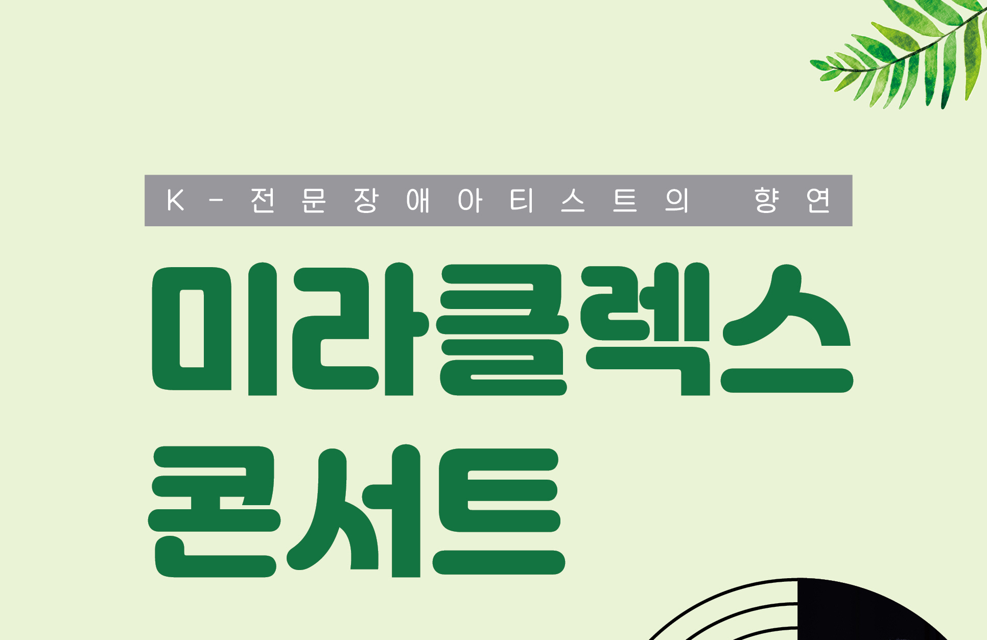 【[공 연]대관공연】K-대표 장애아티스트의 향연 <미라클렉스 콘서트> 장소 동탄복합문화센터 반석아트홀 기간 2023년 7월 26일 ~ 2023년 7월 26일 요일 수 공연시간 2023년 7월 26일(수) 19:00 (소요시간 80분) 티켓정보 전석초대 관람등급 7세 이상 문의 010-4667-일오일구 티켓 예매 링크 https://forms.gle/8PLi1CyNGb47stMA9 목록이미지_미라클래스콘서트(최종본).jpg [ Size : 349.78KB, Down : 874 ] 미리보기 다운로드 목록이미지_미라클래스콘서트(최종본) 미라클래스콘서트(최종본).jpg [ Size : 4.2MB, Down : 916 ] 미리보기 다운로드 미라클래스콘서트(최종본) 목록보기