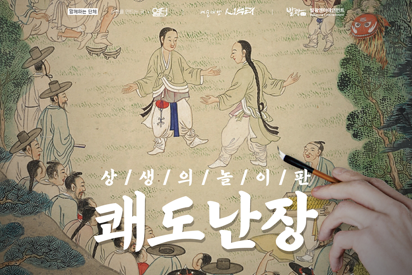 【[공 연]대관공연】상생의 놀이판 쾌도난장 장소 동탄복합문화센터 반석아트홀 기간 2023년 9월 6일 ~ 2023년 9월 6일 요일 수 공연시간 70분 티켓정보 070-4102-6757 관람등급 전체관람가 문의 070-4102-6757 >= 경기도 경기문화재단 희망화성 바꾸는 화성시문화재단">. 목록이미지.jpg [ Size : 1006.61KB, Down : 898 ] 미리보기 다운로드 목록이미지 포스터.jpg [ Size : 4.42MB, Down : 1,316 ] 미리보기 다운로드 포스터 상세페이지.jpg [ Size : 3.72MB, Down : 1,270 ] 미리보기 다운로드 상세페이지 목록보기