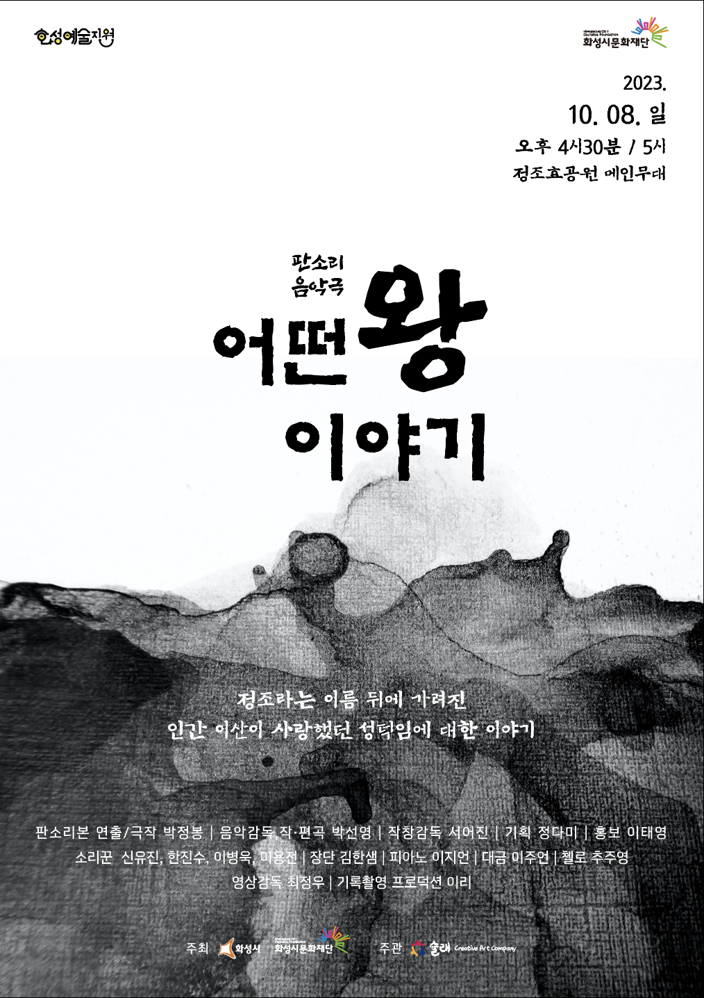 1. [화성예술지원] 술래 - 판소리 음악극 <어떤 왕 이야기>,장소:정조효공원 메인무대,기간:2023년 10월 8일~2023년 10월 8일