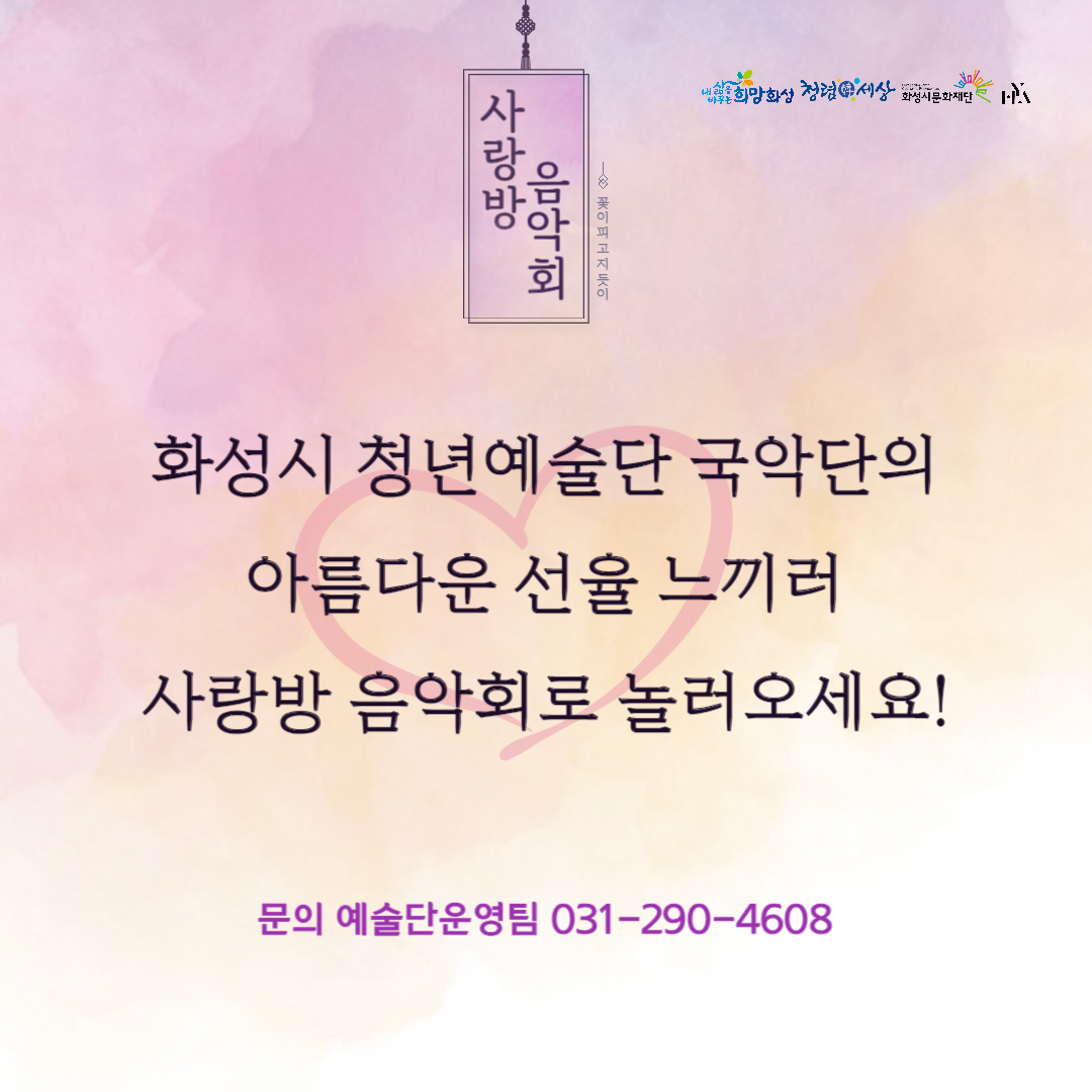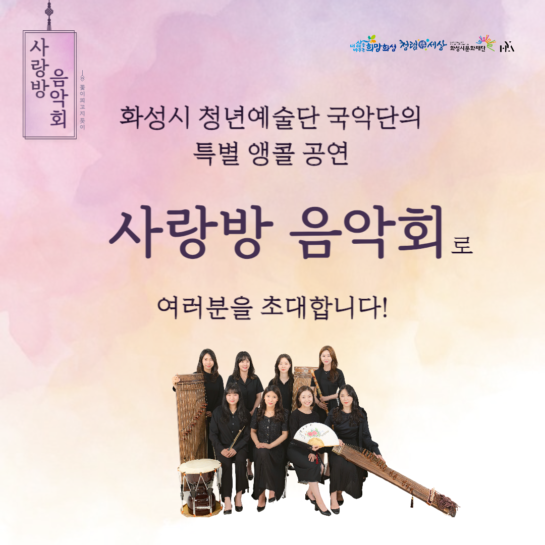 화성시 청년예술단 국악단의 아름다운 선율 느끼러 사랑방 음악회로 놀러오세요!
