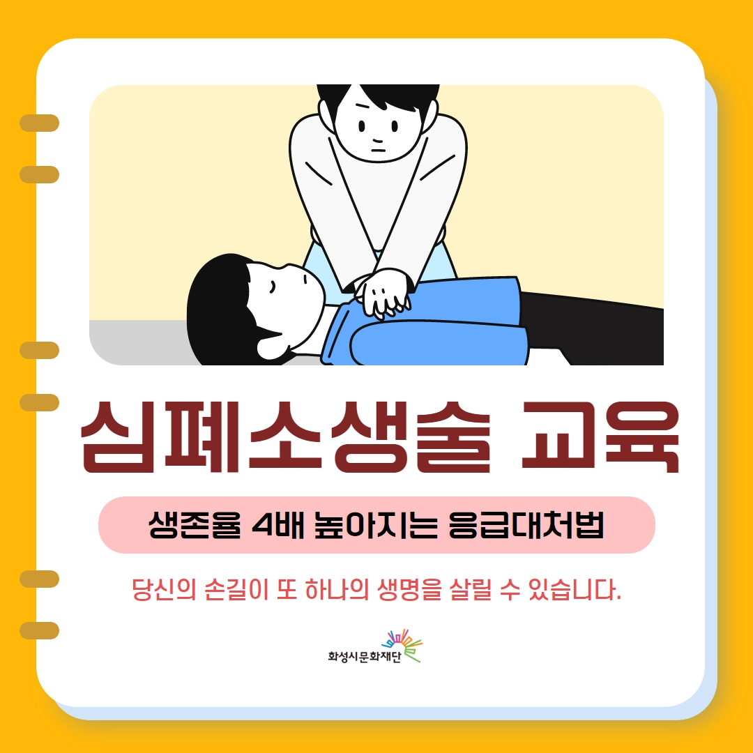 화성시민 여러분의 생활안전 역량 강화를 위하여 심폐소생술 무료교육을 실시합니다.