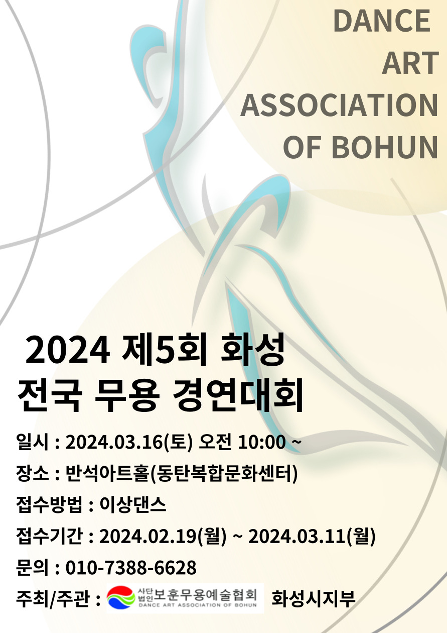 사)보훈무용예술협회 화성시지부에서 대관하여 진행하는 제5회 화성 전국 무용 경연대회입니다.