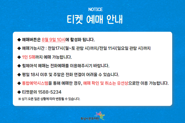 -티켓문의 1588-5234 상기오픈일은 상황에 따라 변동될 수 있습니다.