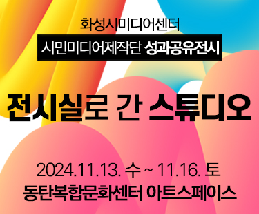 1. 시민미디어제작단 성과공유전시 <전시실로 간 스튜디오>,장소:동탄복합문화센터 아트스페이스,기간:2024년 11월 13일~2024년 11월 16일