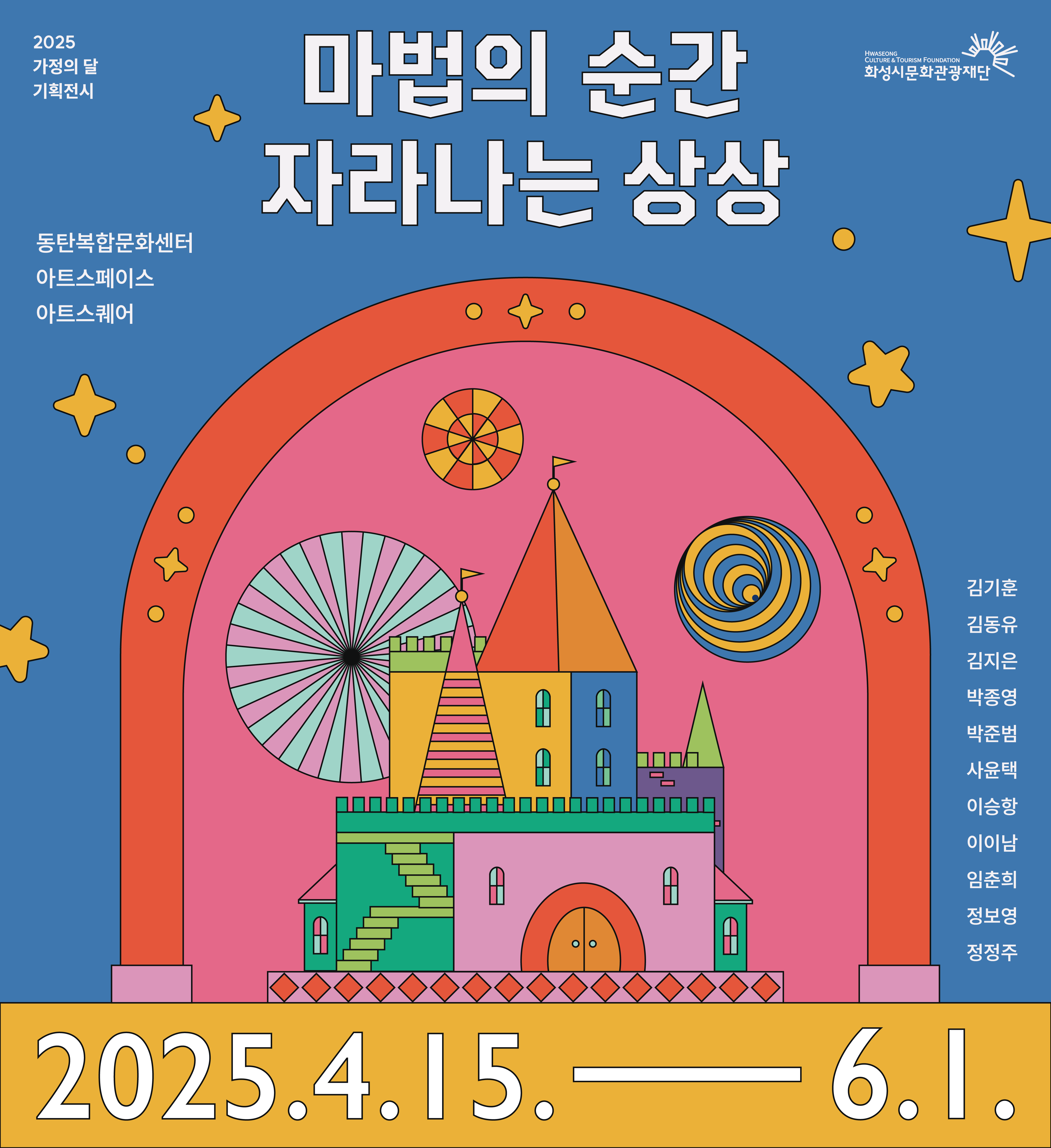 【전 시】2025 가정의 달 기획전 <마법의 순간, 자라나는 상상> 장소 동탄아트스페이스, 아트스퀘어 기간 2025년 4월 15일 ~ 2025년 6월 1일 요일 화, 수, 목, 금, 토, 일 공연시간 10:00~18:00 티켓정보 관람등급 문의 031-290-4602 / 031-290-4604 많은 관람 부탁드립니다~ 엘리베이터DID_1080X1180.png [ Size : 872.73KB, Down : 288 ] 미리보기 다운로드 엘리베이터DID_1080X1180 포스터.png [ Size : 1.33MB, Down : 432 ] 미리보기 다운로드 포스터 목록보기