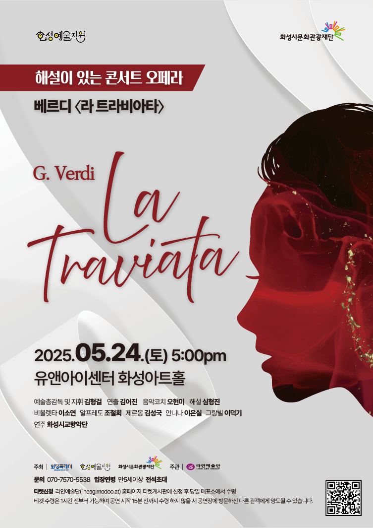 【[공 연]대관공연】오페라 라트라비아타 장소 화성아트홀 기간 2025년 5월 24일 ~ 2025년 5월 24일 요일 토 공연시간 17:00 티켓정보 전석초대 관람등급 5세 이상 문의 070-7570-오오삼팔 티켓문의: https://lineag.modoo.at/?link=bwb8jl3c 1000017216.png [ Size : 94.38KB, Down : 169 ] 미리보기 다운로드 1000017216 포스터.png [ Size : 361.48KB, Down : 174 ] 미리보기 다운로드 포스터 1000017217.png [ Size : 2.59MB, Down : 785 ] 미리보기 다운로드 1000017217 목록보기