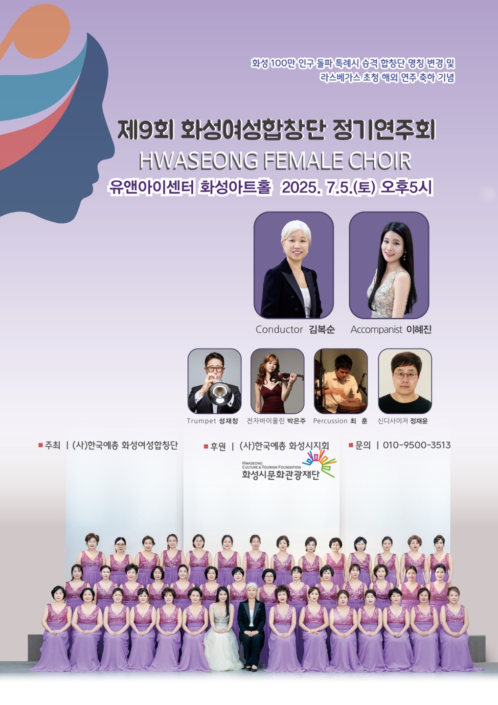 【[공 연]대관공연】화성여성합창단 제9회 정기연주회 장소 화성아트홀 기간 2025년 7월 5일 ~ 2025년 7월 5일 요일 토 공연시간 17:00 티켓정보 전석 무료 관람등급 전체 관람가 문의 010-9500-삼오일삼 많은 관심 바랍니다. 1000075360.jpg [ Size : 258.84KB, Down : 374 ] 미리보기 다운로드 1000075360 1000075360.jpg [ Size : 258.84KB, Down : 67 ] 미리보기 다운로드 1000075360 1000075361.jpg [ Size : 171.89KB, Down : 392 ] 미리보기 다운로드 1000075361 목록보기