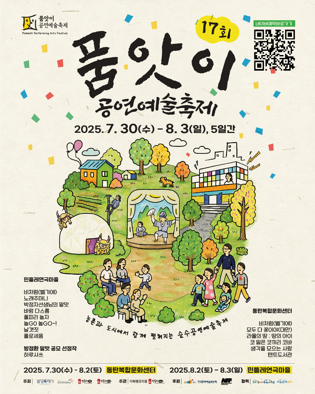 오는 7월 30일(수)~8월 3일(일)에 동탄복합문화센터, 우정읍 민들레연극마을에서 진행됩니다.