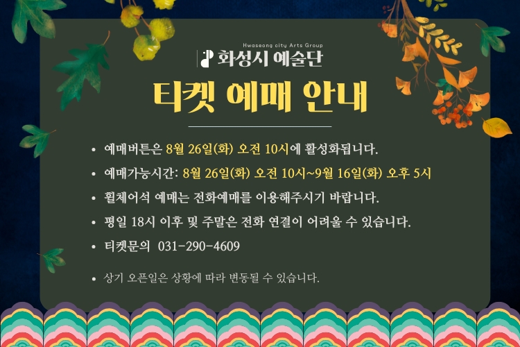 -예매가능시간: 8월 26일(화) 오전 10~9월16일(화) 오후 5시