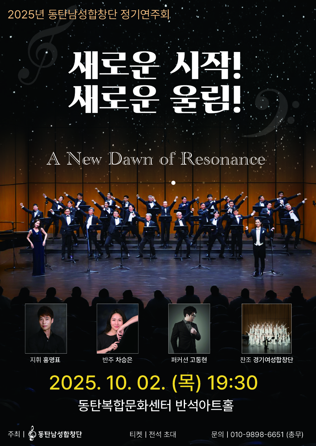 1. 창단 13주년 기념 동탄남성합창단 정기연주회,장소:동탄복합문화센터 반석아트홀,기간:2025년 10월 2일~2025년 10월 2일