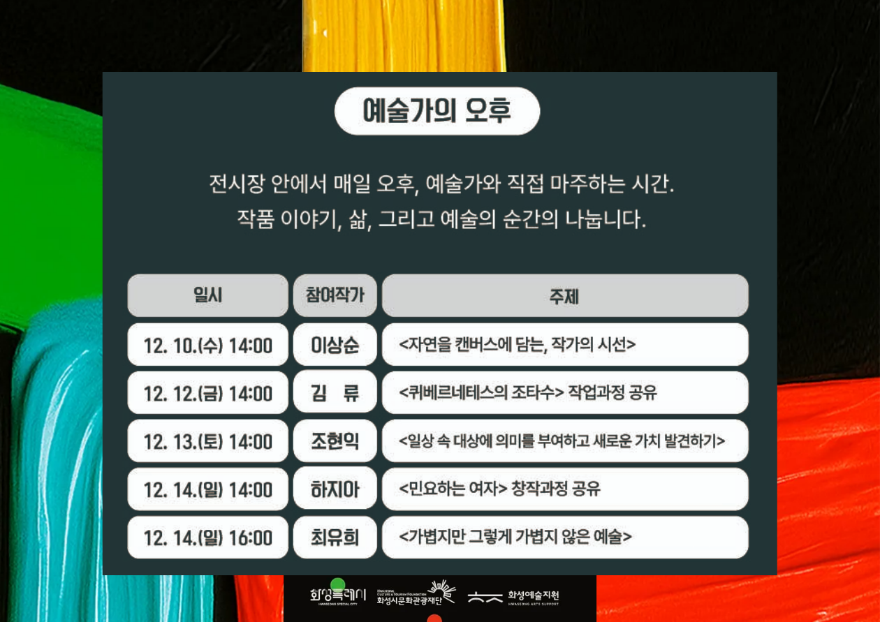 【전 시】「예술가의 오후 (아티스트 토크)」 - 2025 화성예술지원 아카이브 전시 「Palette Days」 연계 프로그램
