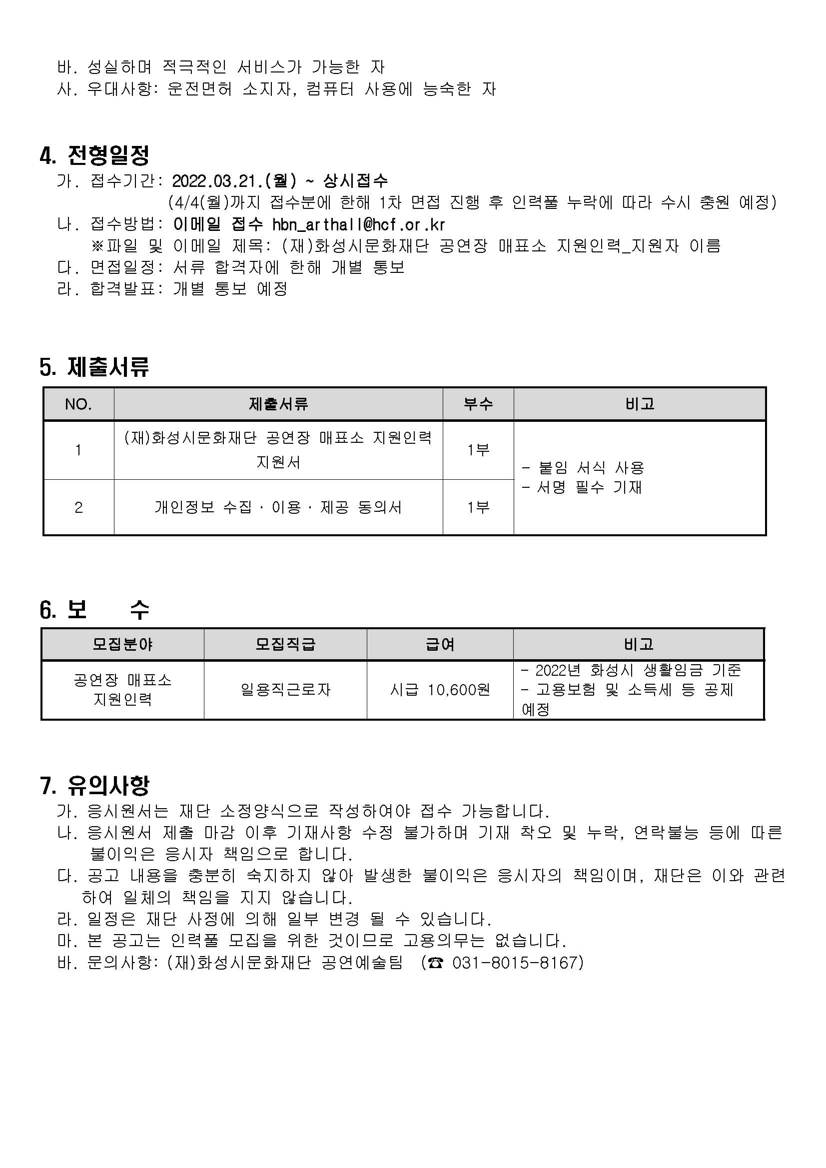 (재)화성시문화재단 공연장 매표소 지원인력 모집공고(2022년)_페이지_2