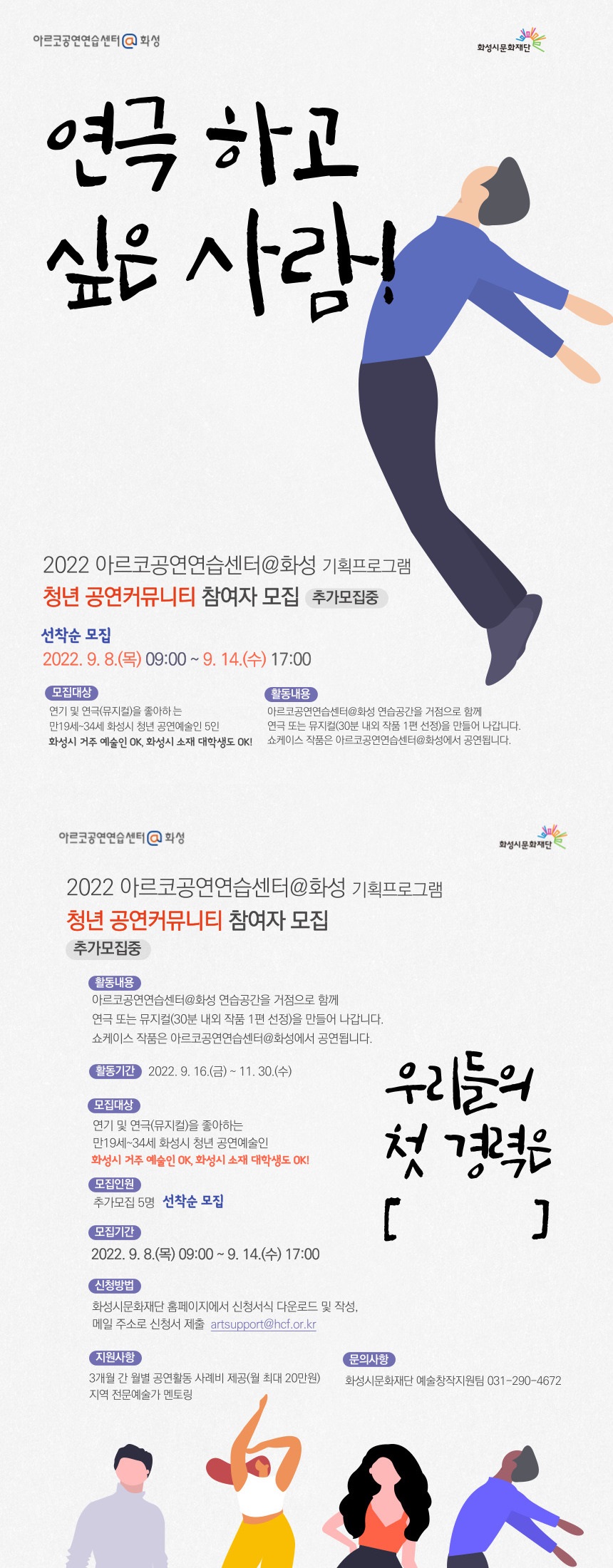 □ 건 명 : 2022 아르코공연연습센터@화성 청년 공연커뮤니티 참여자 추가모집
