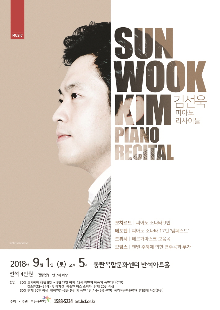 화성시문화재단 <김선욱 피아노 리사이틀> 8월 8일 티켓 오픈