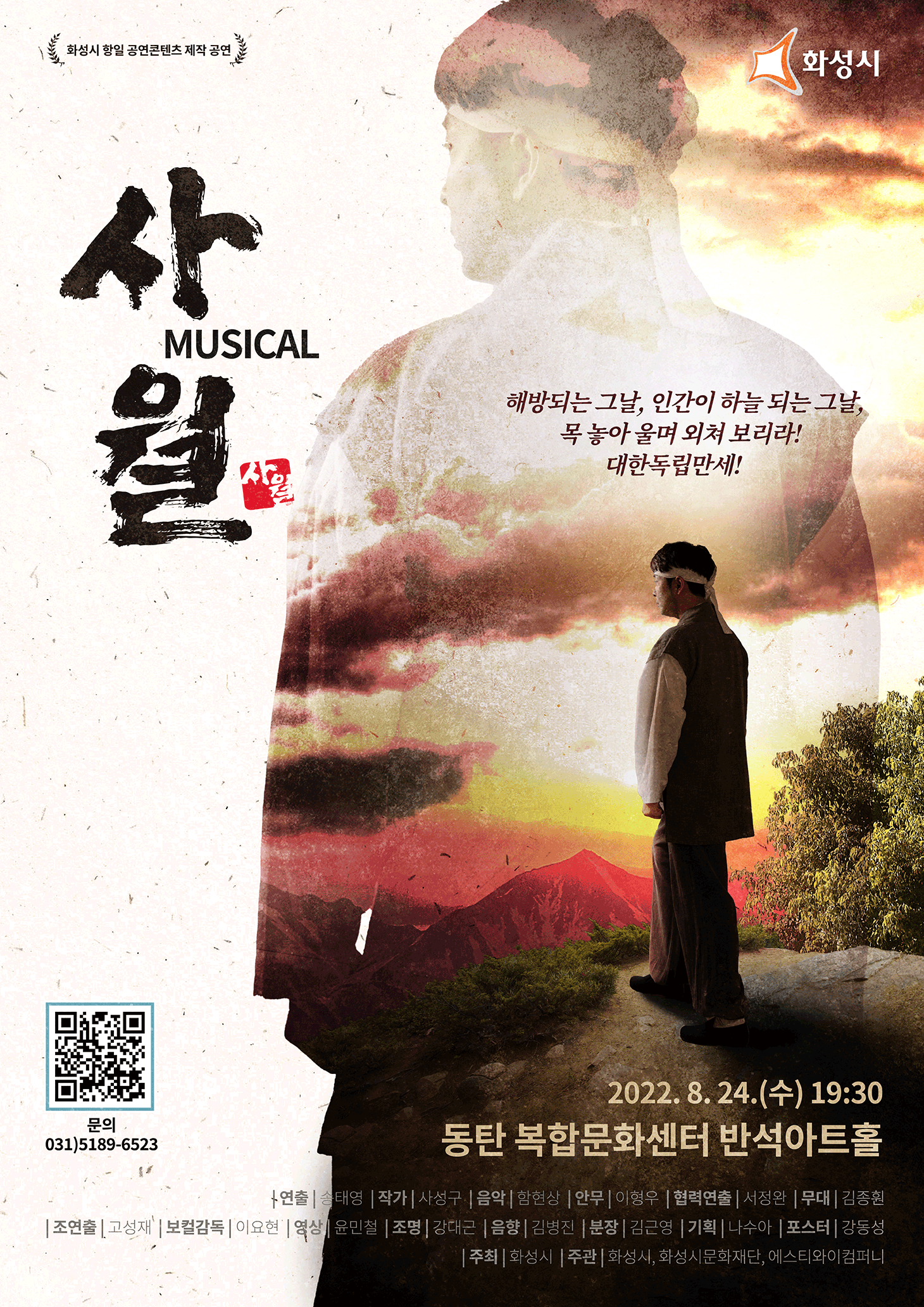 1. 화성시 항일 공연콘텐츠 뮤지컬 <사월>,장소:동탄복합문화센터 반석아트홀,기간:2022년 8월 24일~2022년 8월 24일