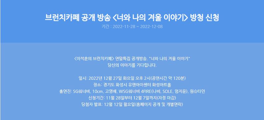 <이석훈의 브런치카페> 연말특집 공개방송. "너와 나의 겨울 이야기"