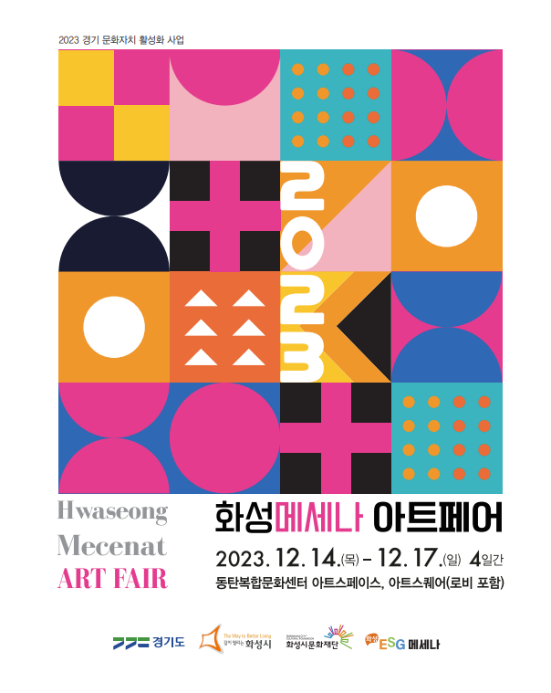 1. 화성메세나 아트페어,장소:동탄아트스페이스, 동탄아트스퀘어,기간:2023년 12월 14일~2023년 12월 17일