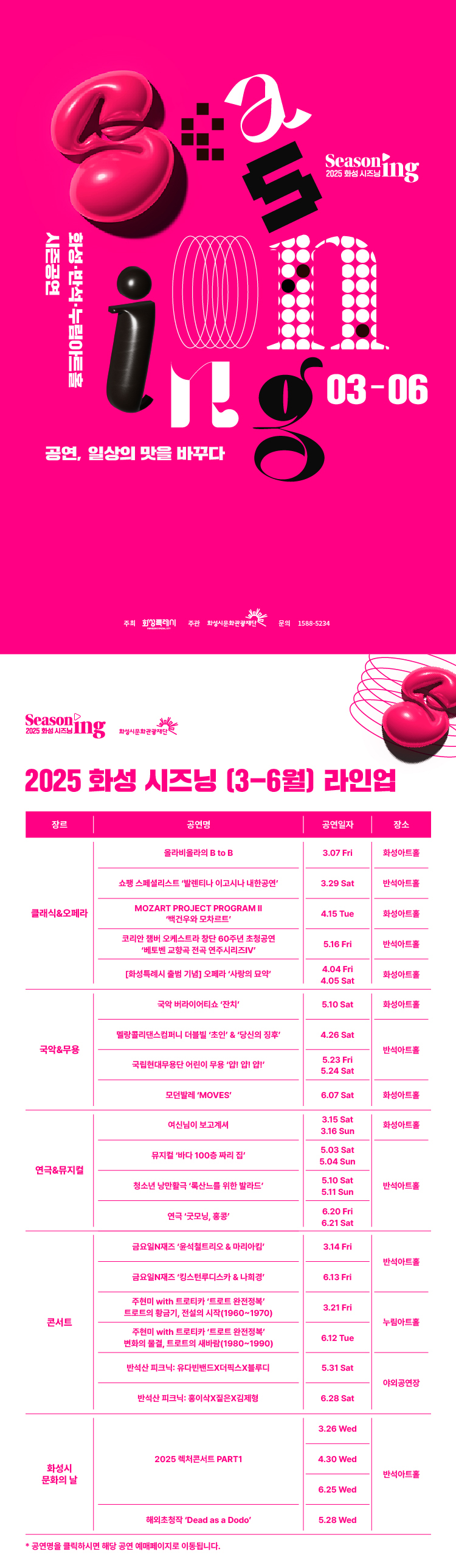【[공 연]기획공연】2025 화성시문화관광재단 상반기 기획공연