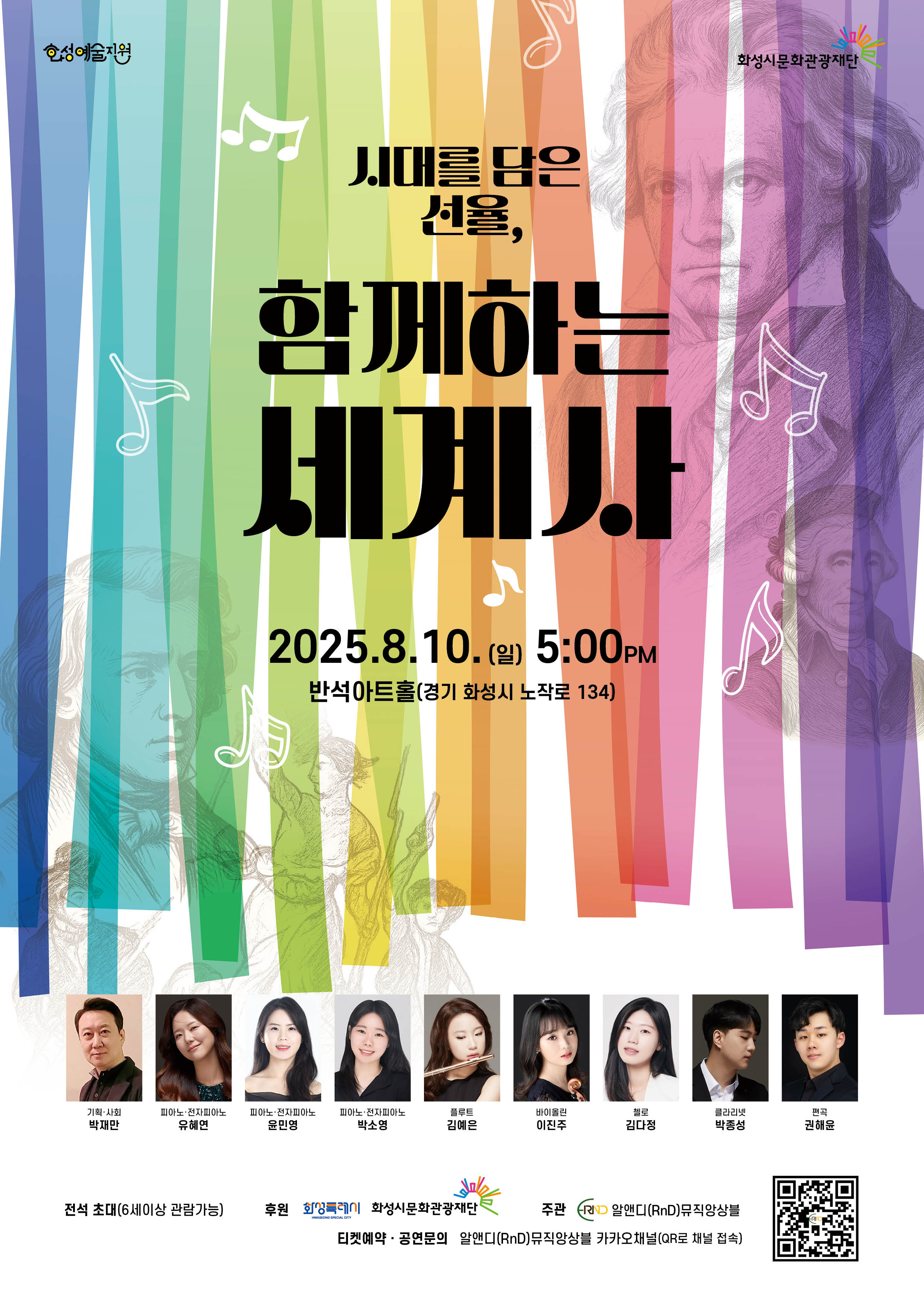 1. 시대를 담은 선율, 함께하는 세계사,장소:동탄복합문화센터 반석아트홀,기간:2025년 8월 10일~2025년 8월 10일