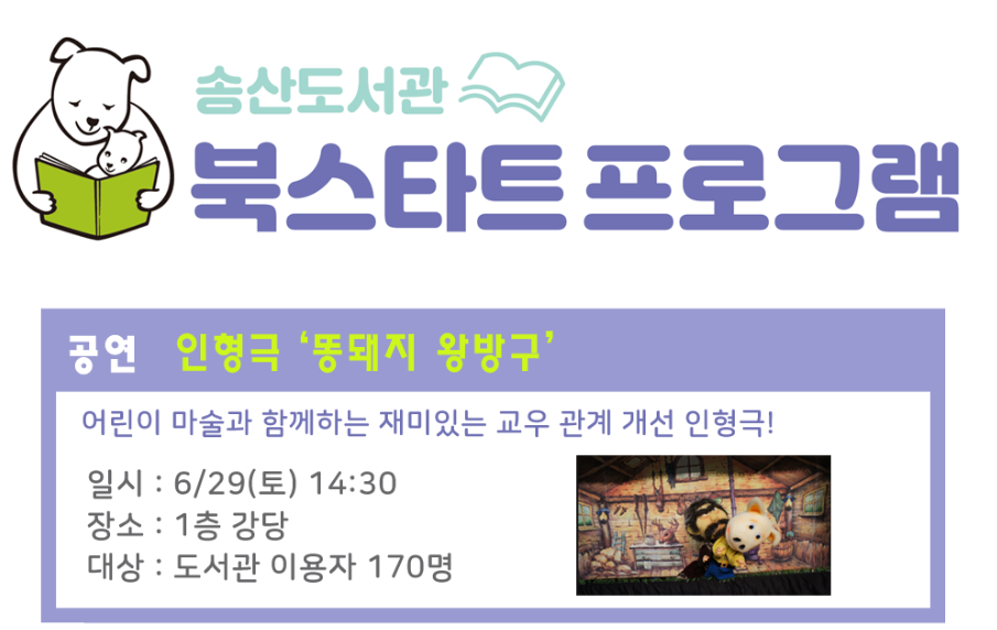 【[기 타] 행사】[북스타트] 인형극 '똥돼지 왕방구'