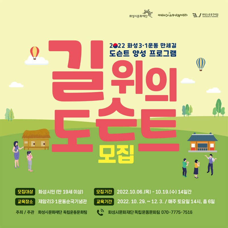 【[기 타] 일정】2022년 화성3·1운동만세길 도슨트 양성 프로그램<길 위의 도슨트> 모집