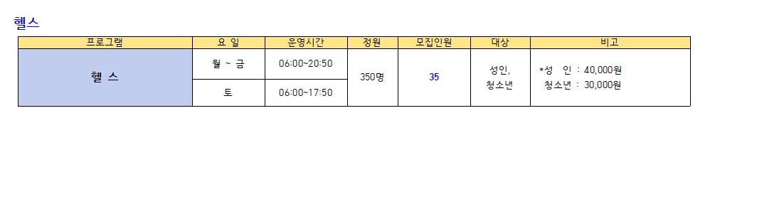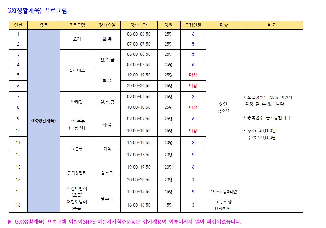 ● 모집프로그램: 수영 프로그램, GX(생활체육), 헬스