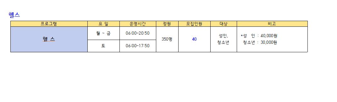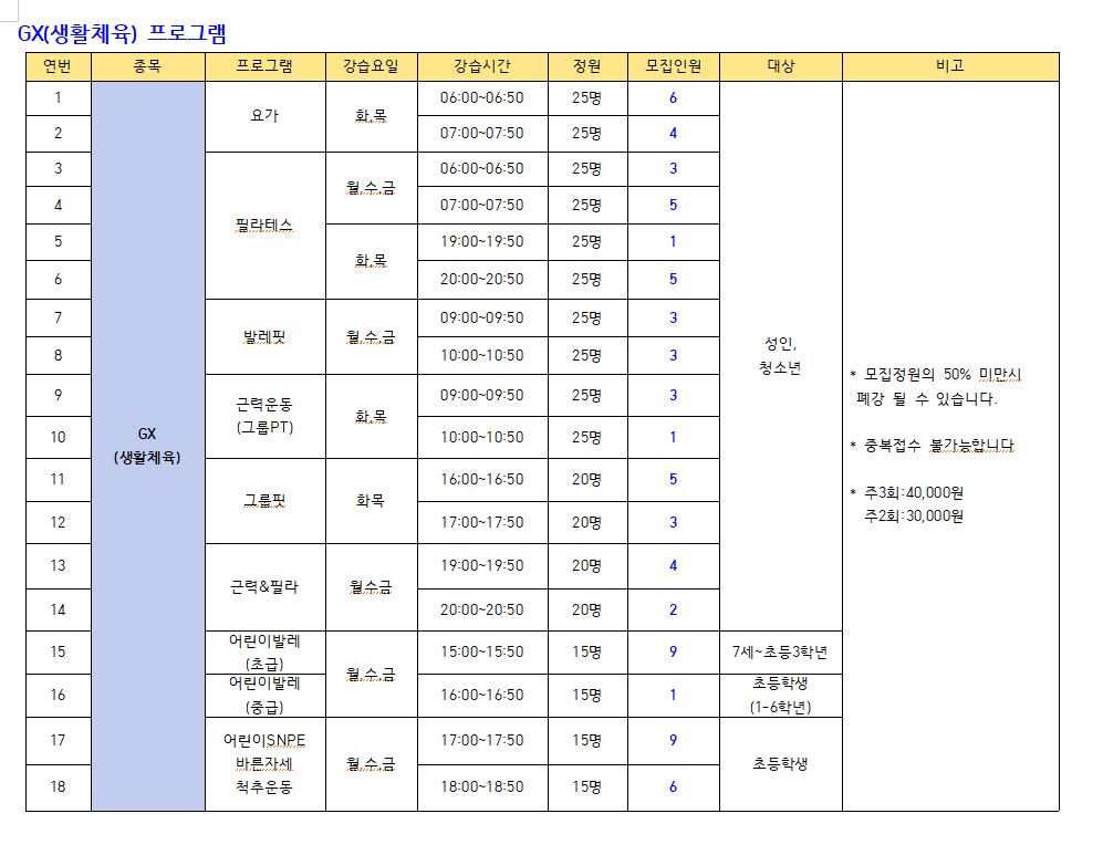 ● 모집프로그램: 수영 프로그램, GX(생활체육), 헬스