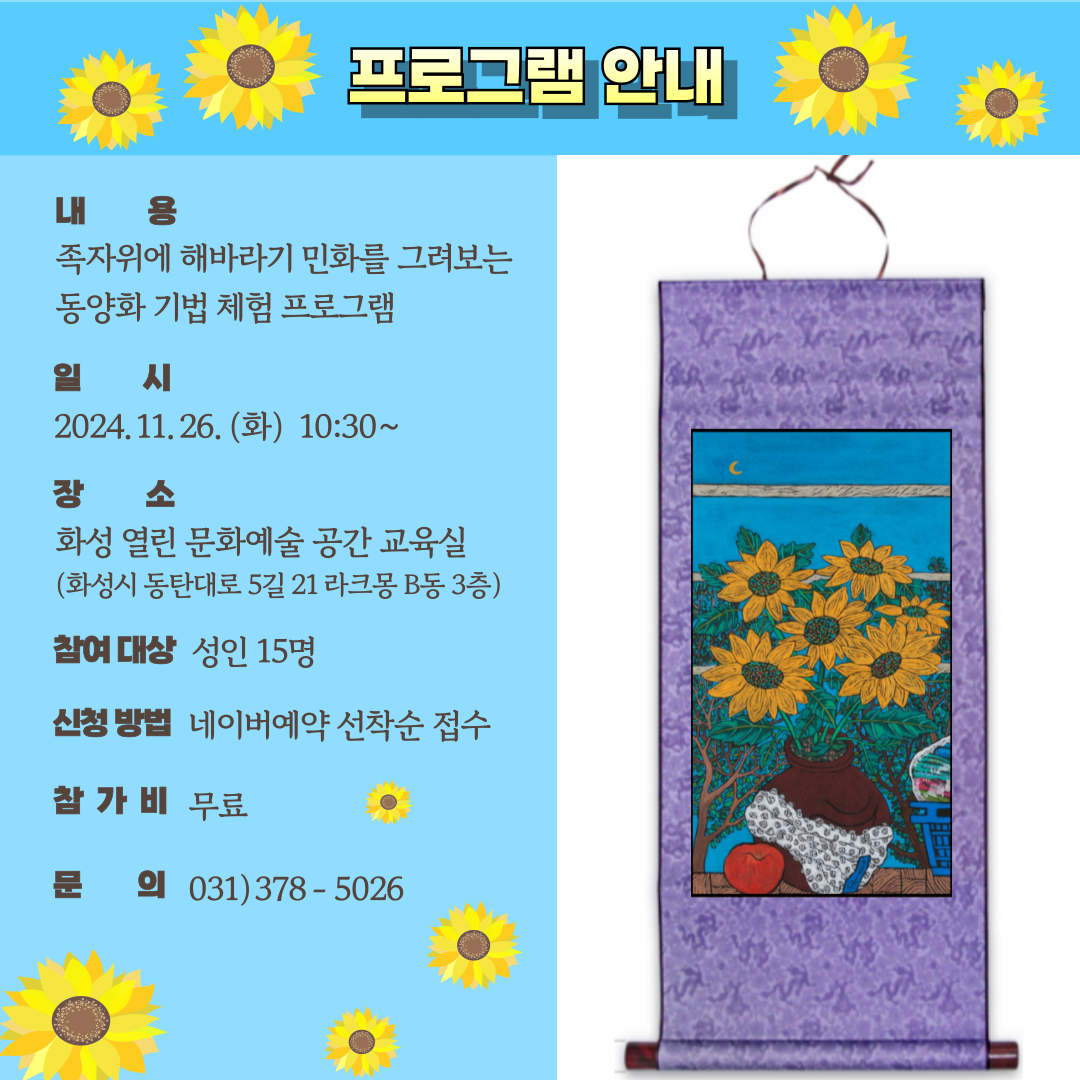 [화성 열린 문화예술 공간] 기획전시 연계프로그램 동양화 기법 체험 <해바라기 민화 그리기> 참여자 모집