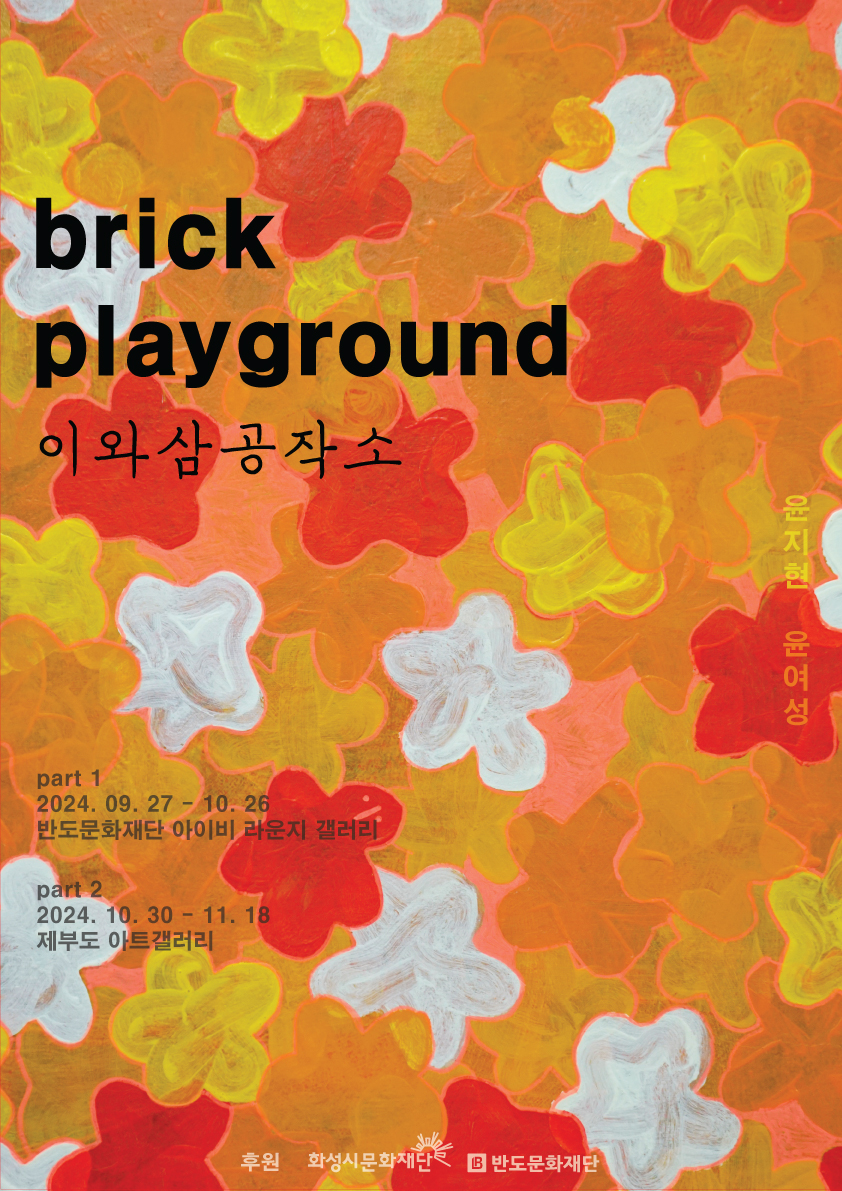 [2024 화성 메세나] Brick Playground(벽돌놀이터) 9.27~11.18. 작성자 관리자 작성일 2024년 9월 19일 16시 53분 54초 조회 885 이와삼공작소-포스터-변경.jpg [ Size : 902.96KB, Down : 293 ] 미리보기 다운로드 이와삼공작소-포스터-변경 Brick Playground(벽돌놀이터) - 이와삼공작소도자기 벽돌을 쌓아가는 과정을 통해 가족과 함께한 시간과 추억을 재조명하고 남녀노소 모두가 즐길 수 있는 따뜻한 일상 속 놀이의 의미를 탐구하는 전시part 1. 2024.09.27. ~ 10.26. 반도문화재단 아이비 라운지 갤러리 part 2. 2024.10.30. ~ 11.18. 제부도 아트갤러리 *본 사업은 화성시문화재단과 반도문화재단의 <2024 화성 메세나> 지원금으로 추진됩니다. 목록보기