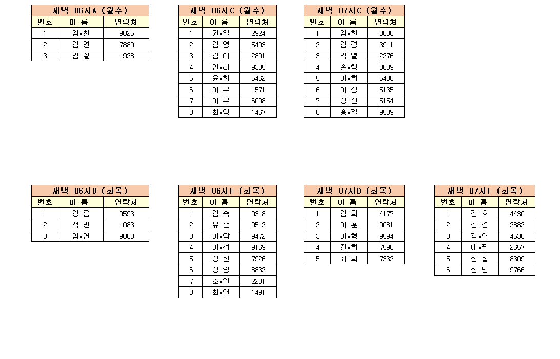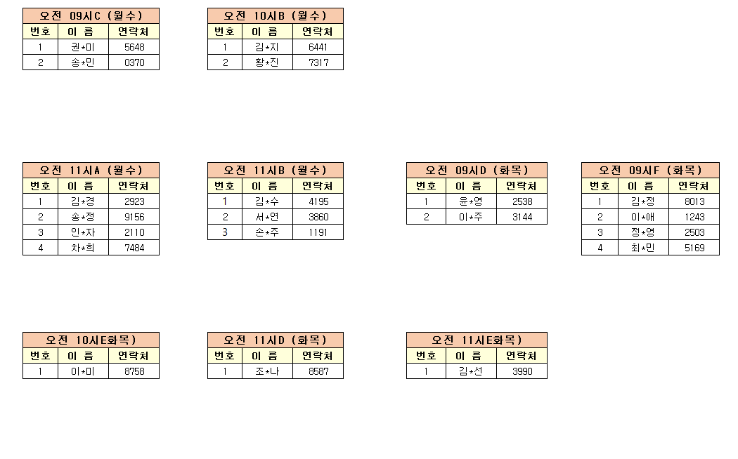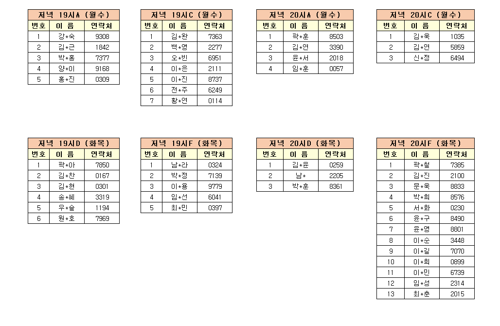 -강습반명, 성명, 전화번호 뒷자리, 강습요일을 확인하시고 강습에 참여해 주시기 바랍니다.