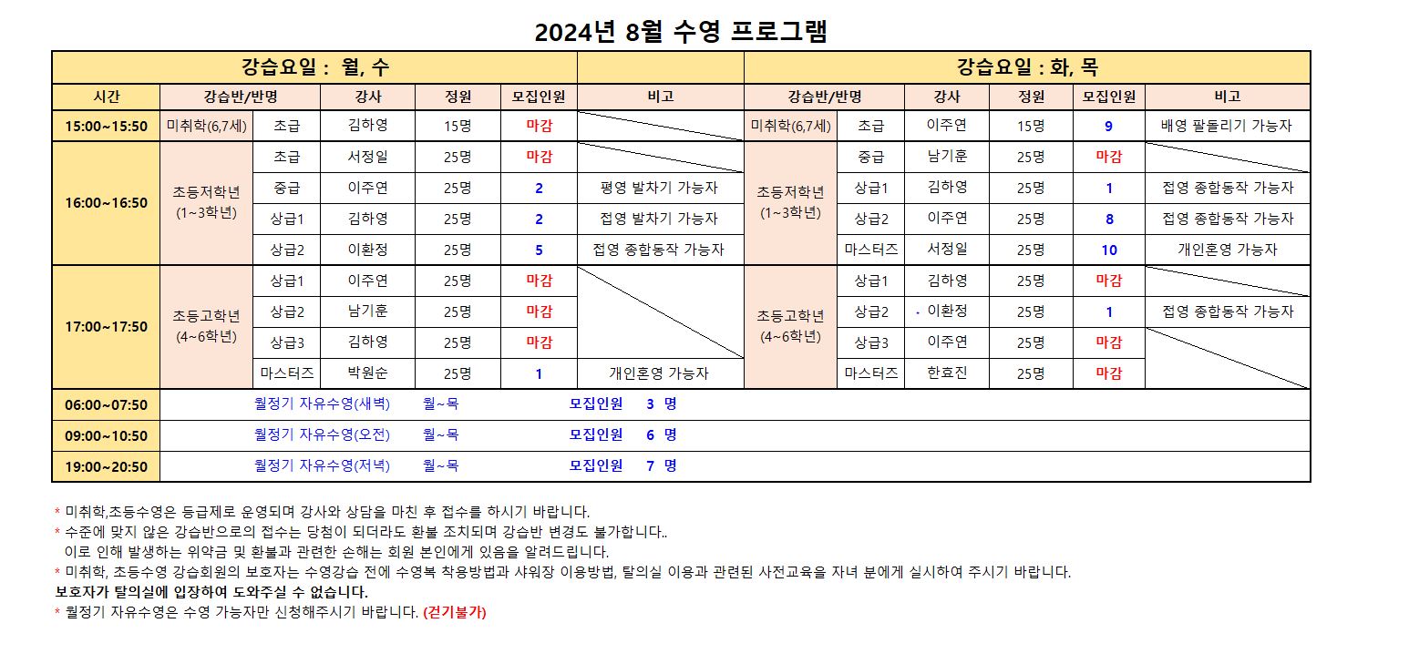 2024년 8월 스포츠 프로그램 추가모집 안내