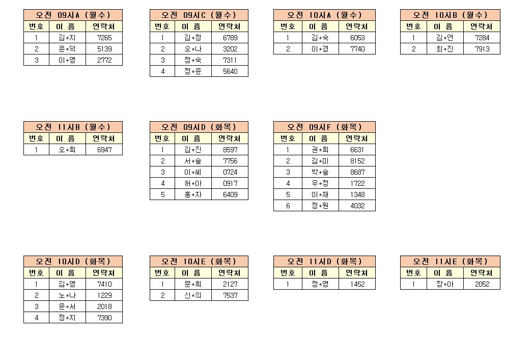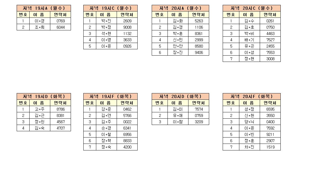 - 강습반명, 성명, 전화번호 뒷자리, 강습요일을 확인하시고 강습에 참여해 주시기 바랍니다.