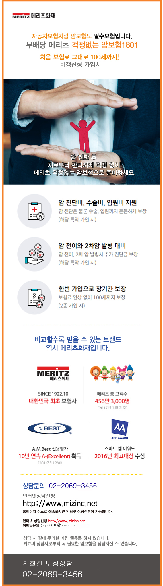 처음 보험료 그대로 100세까지-메리츠 걱정없는암보험