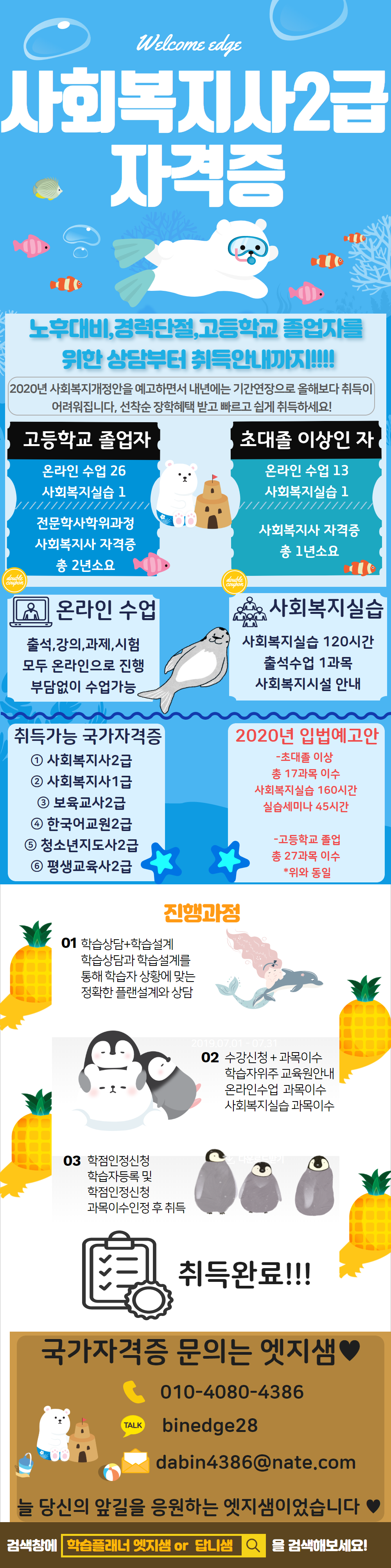 게시판 취지와 관계없는 불법정보 게시, 타인 비방, 광고성 글 등은 예고없이 삭제될 수 있습니다. ★사회복지사 2급 자격증!! 고졸도 가능!! 특별장학혜택!!★ 작성자1 조다빈 작성일 2019년 10월 2일 14시 6분 2초 조회 87 2.png [ Size : 697.22KB, Down : 83 ] 미리보기 다운로드 asfdsf 목록보기