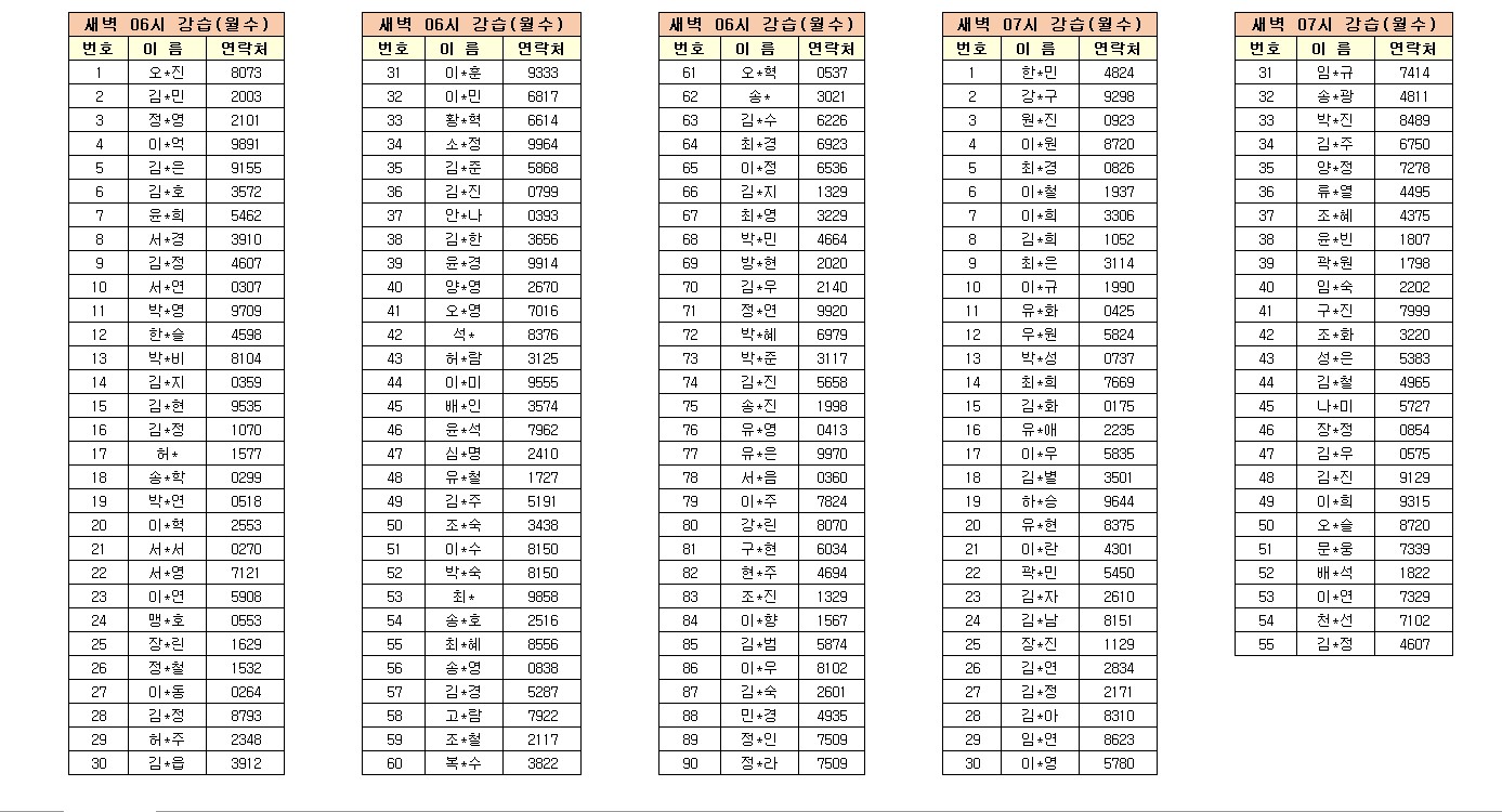 2023년 4월 14일 18시 기준 수영 프로그램 대기자 현황입니다. 대기자 중 2023년 5월 강습 순번도래자 및 등록날짜, 결제방법 등의 자세한 사항은 4월 20일 정보마당 → 공지사항을 통해 안내해드리오니 확인 부탁드립니다.